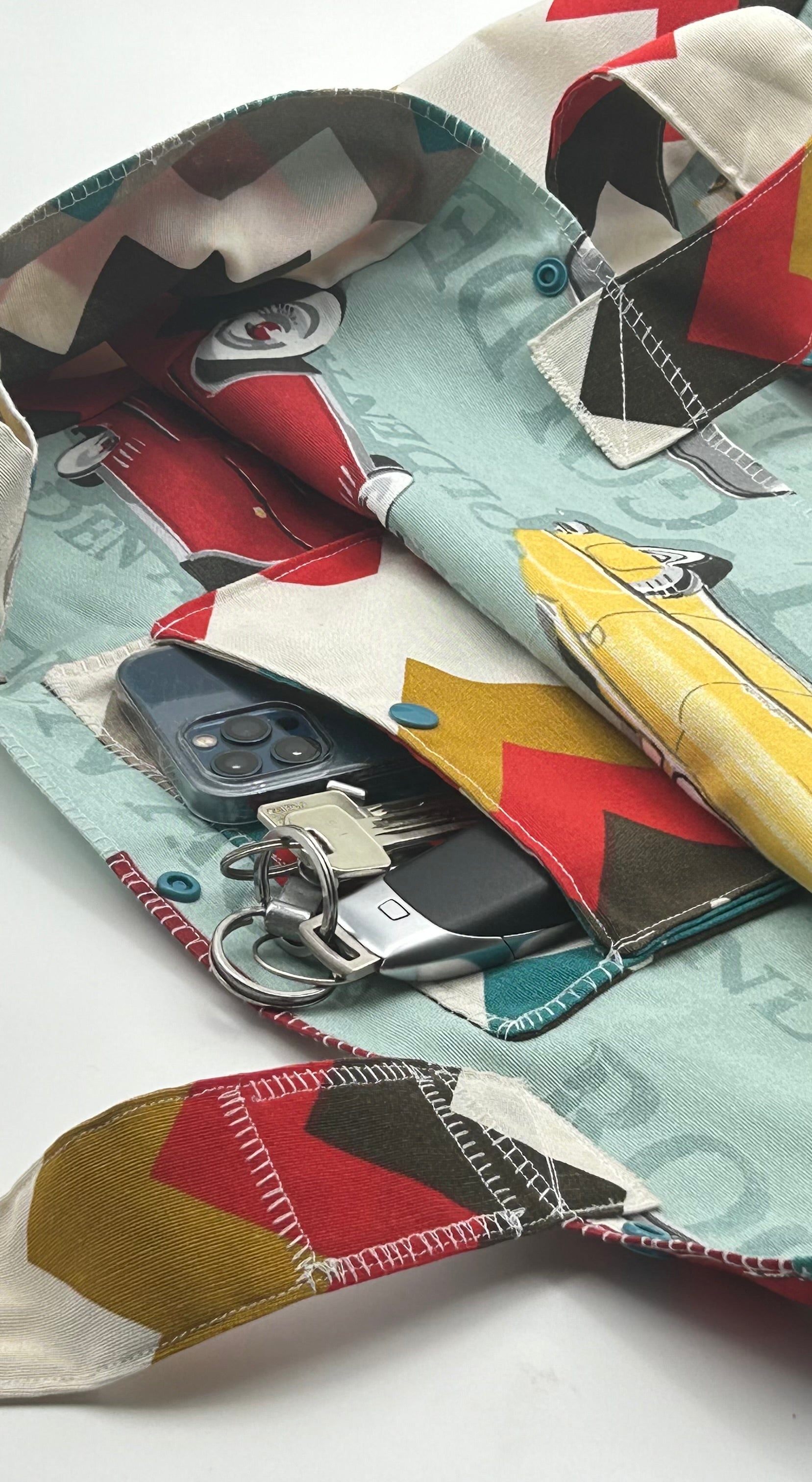 Eine kleine Innentasche mit Druckknopf schützt dein Handy oder Geldbeutel.